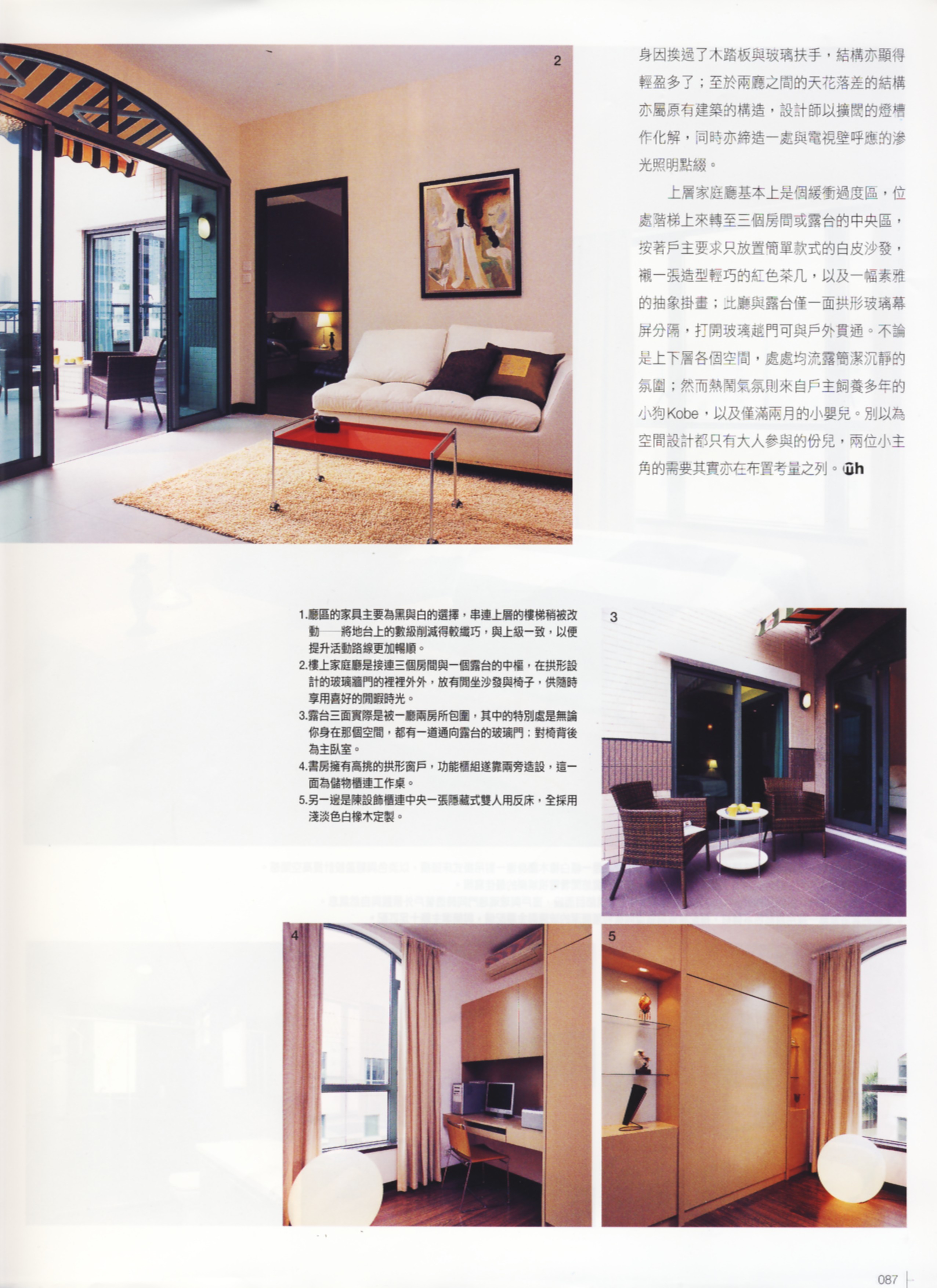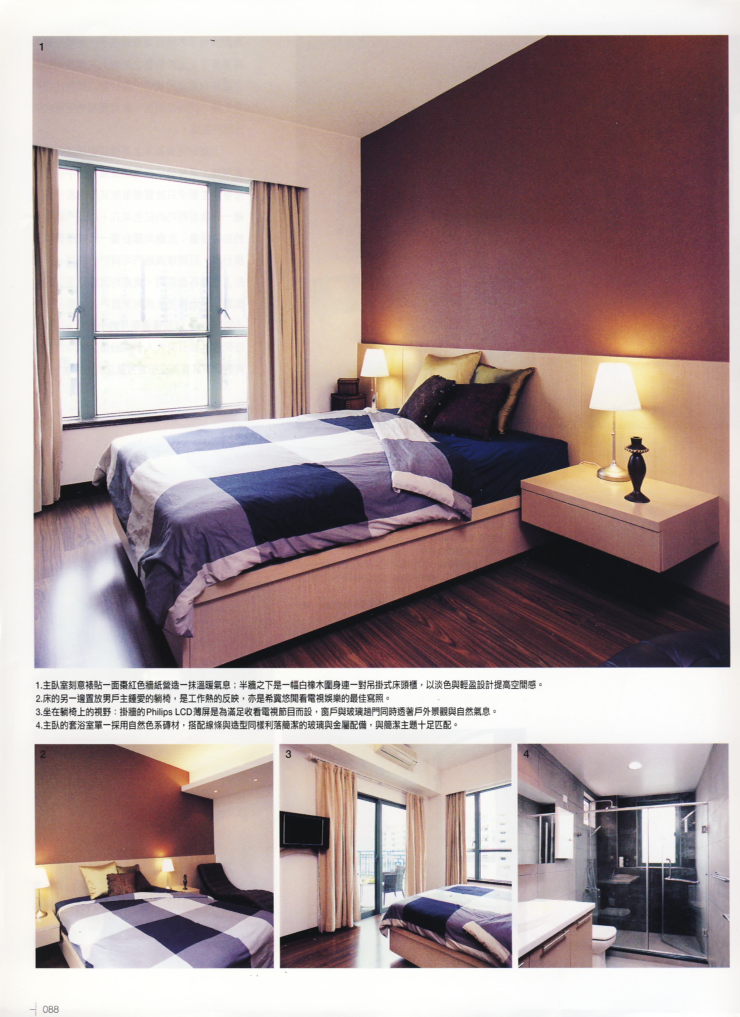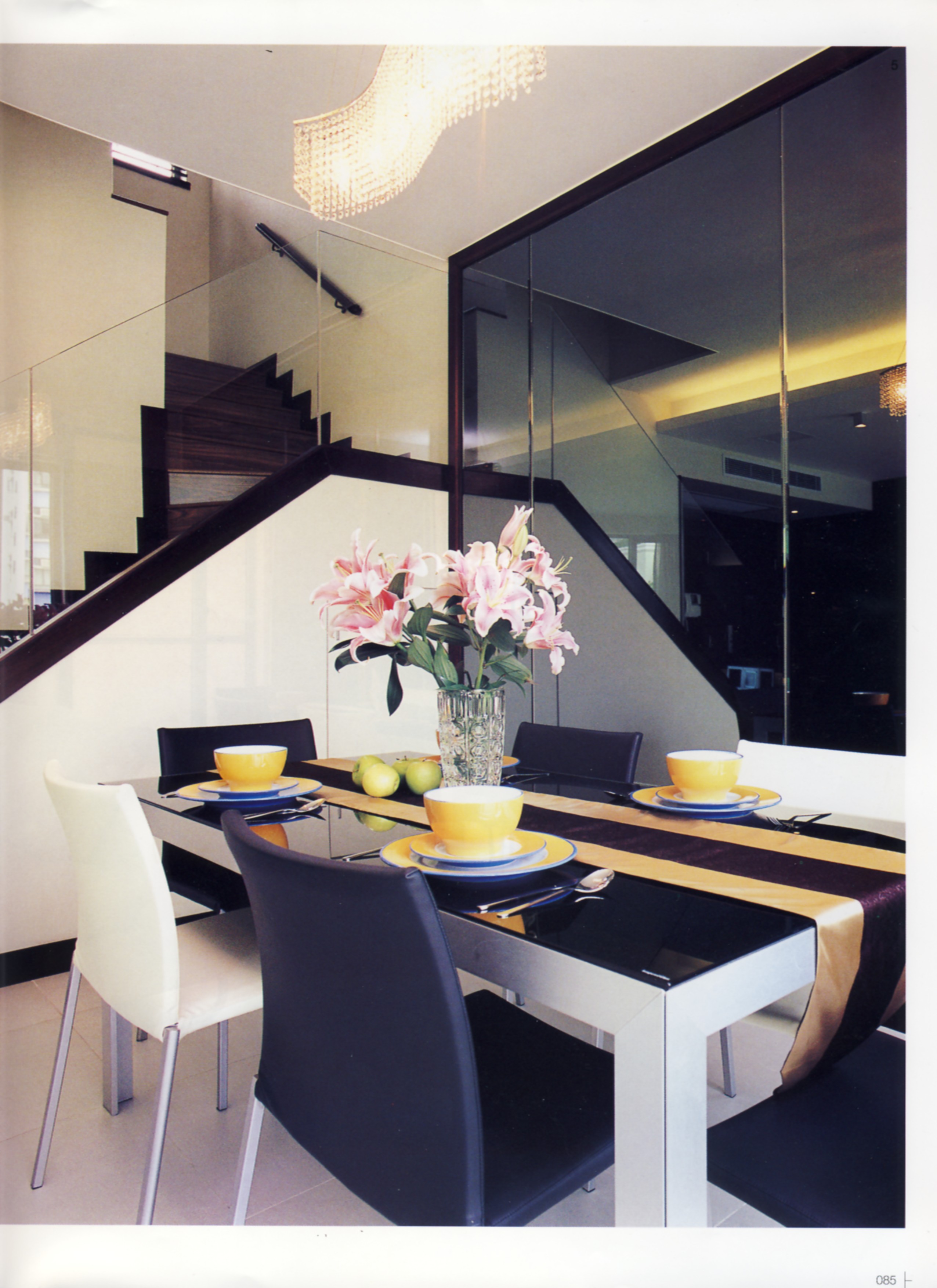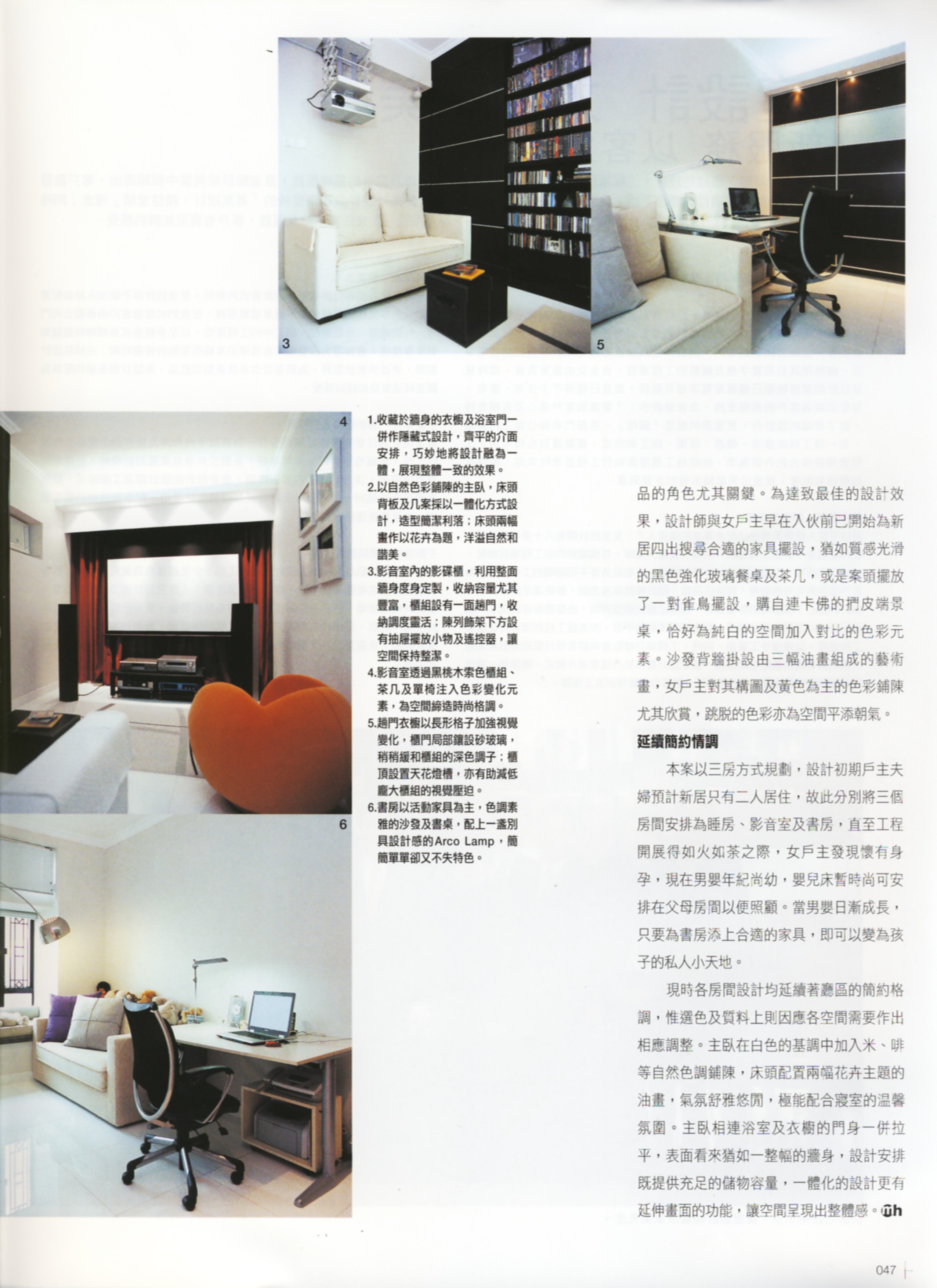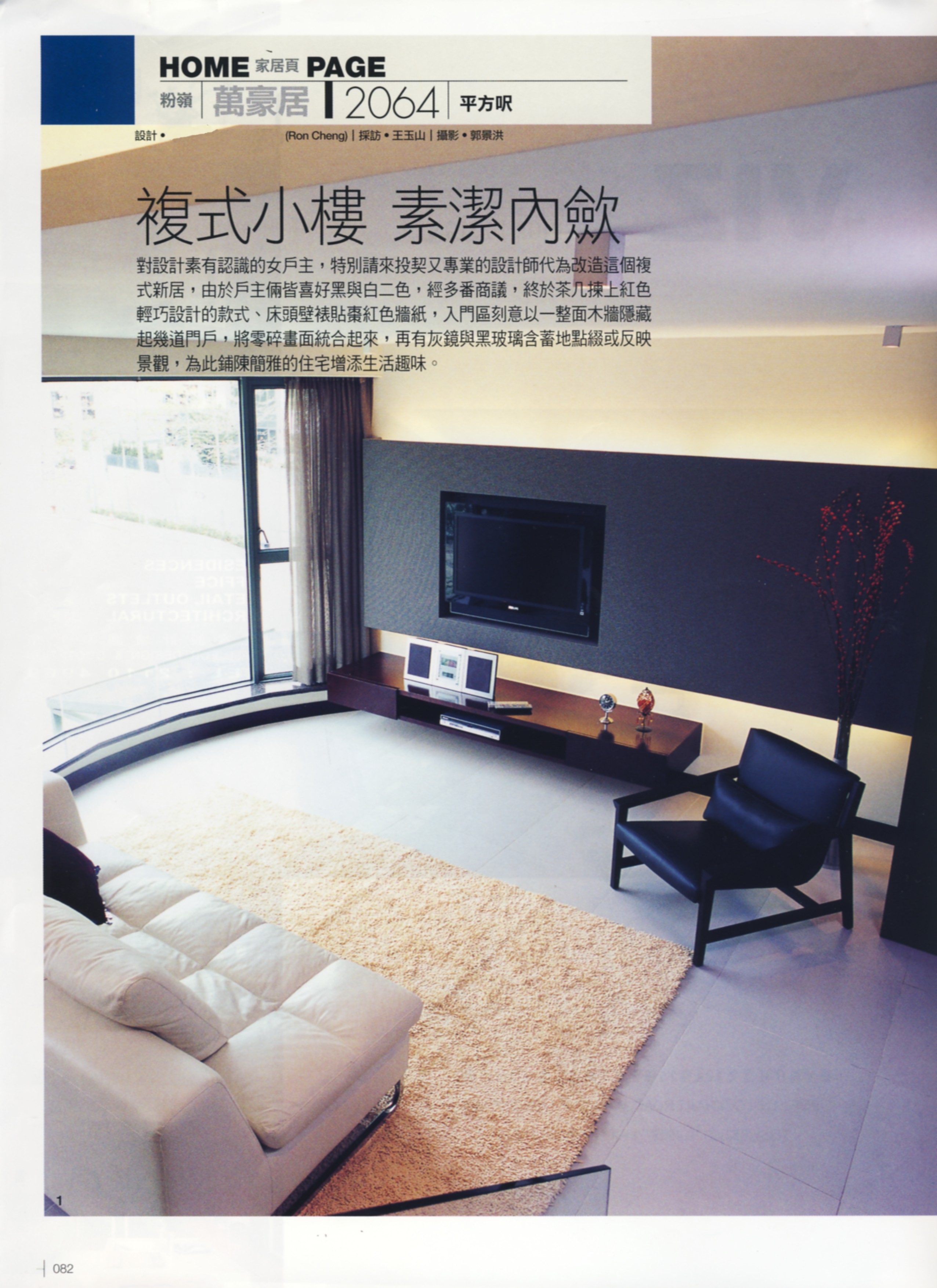 對設計素有認識的女戶主,特別請來投契又專業的設計師代為改造這個複式新居,由於戶主㑒皆喜好黑與白二色,經多番適議,終於茶了几㨂上紅色輕巧設計的款式、床頭壁裱貼棗紅色牆紙,入門區刻意以一整面木牆隱藏起幾道門戶,將零碎畫面統合起來,再有灰鏡與黑玻璃含蓄地點綴或反映景觀,為此鋪陳簡雅的住宅添生活趣味。